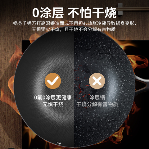【中康铁锅】无涂层健康炒菜锅,电磁炉燃气灶通用,耐用不粘,炒菜更省油!家用必备,品质之选!