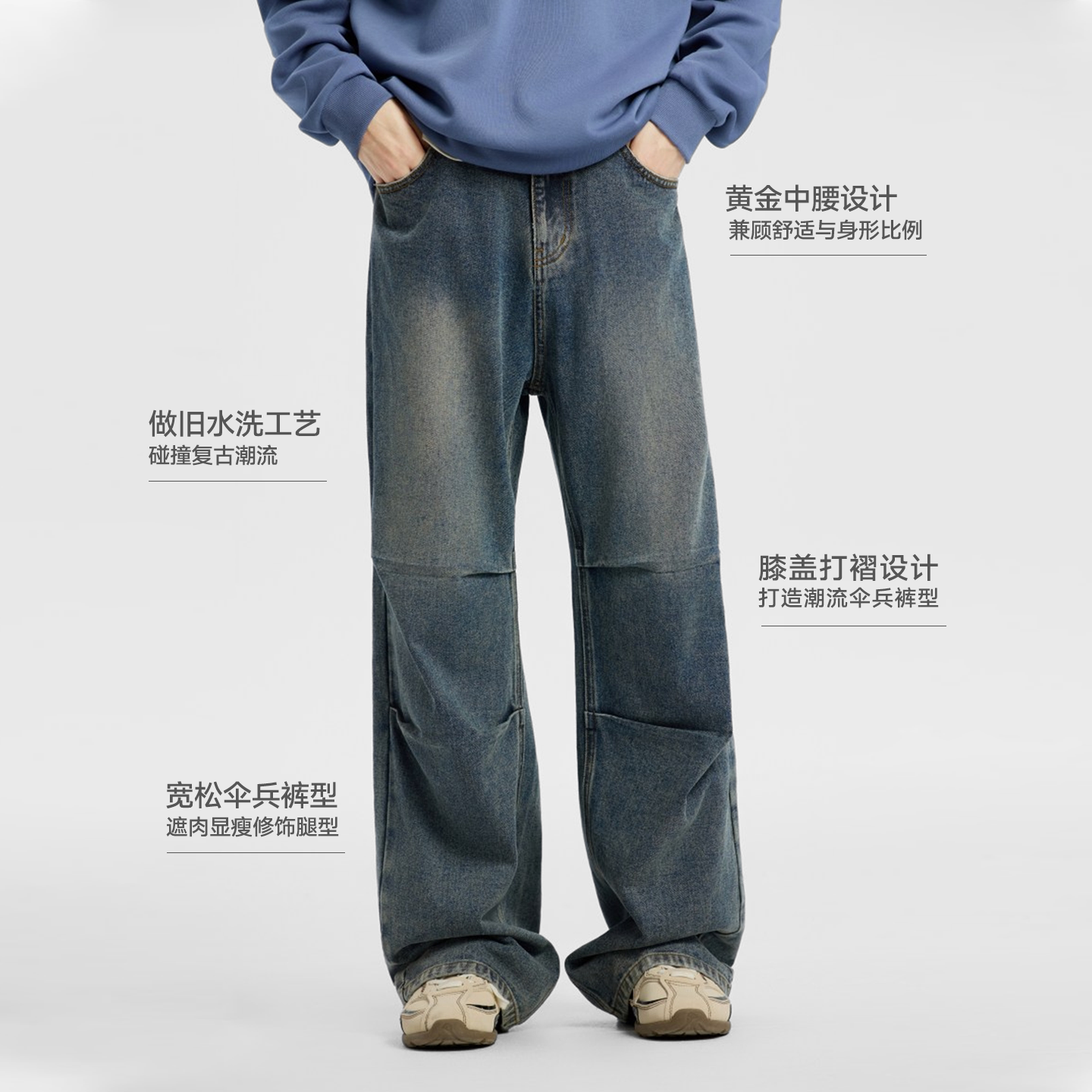 牛仔裤加厚男士500克G耐磨弹力宽松直筒高腰大码 休闲男裤