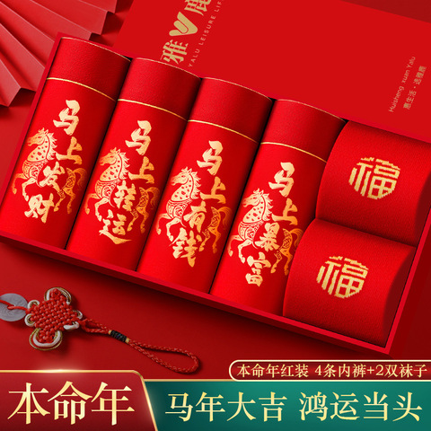 大红纯棉 + 抗菌设计!!健康舒适!贴心呵护!适合本命年穿着!!关键高品质礼盒装!!