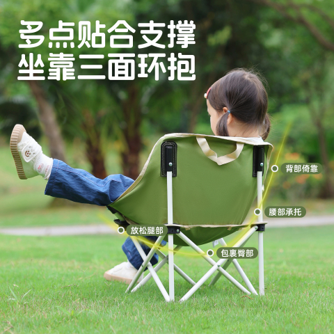 骆驼儿童便携式折叠月亮椅,户外露营、钓鱼必备!轻便折叠设计,稳固承重,适合家庭出游使用,宝宝坐着超舒服!