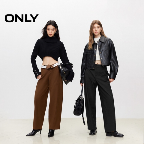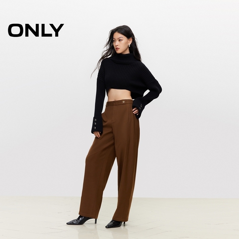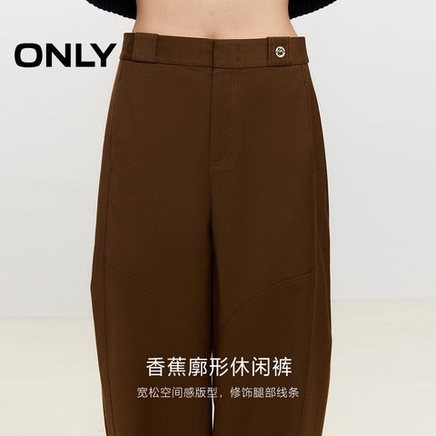 ONLY冬季时髦百搭高腰纯色香蕉裤长裤休闲裤子|124414023
