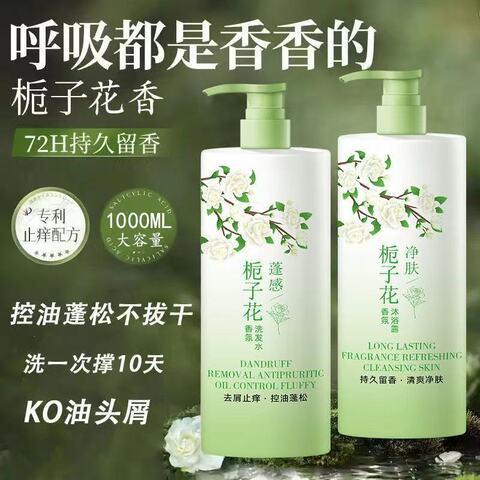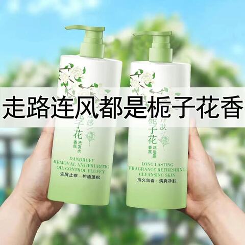 栀子花控油除螨洗发水,洗出蓬松高颅顶。头油头痒拜拜,栀子花香随身带。植萃除螨,清爽发根,留香超持久。