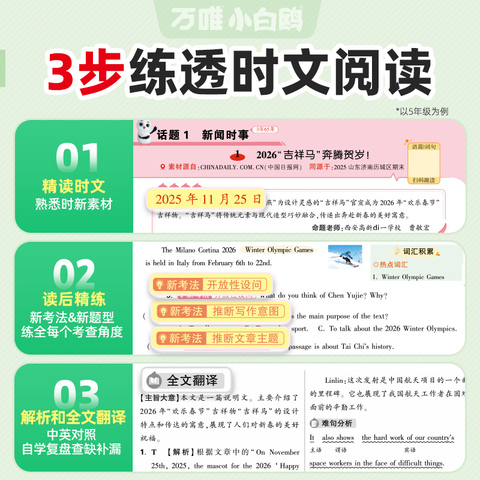 【2026新版】小白鸥小学英语时文阅读真题,专为小升初设计!完形填空+阅读理解+词汇专项,强化训练提升语感,三四五六年级适用,助力英语成绩稳步提升!