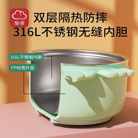 【可签到】宝宝吃饭神器——甜奈辅食碗来啦!316不锈钢安全材质,无缝内胆,强韧耐摔,不易碎裂,母婴级安全又耐用,宝妈带娃吃饭更省心!