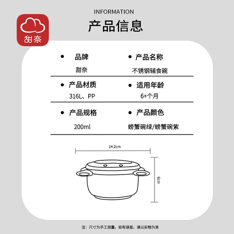 甜奈辅食碗316不锈钢安全材质