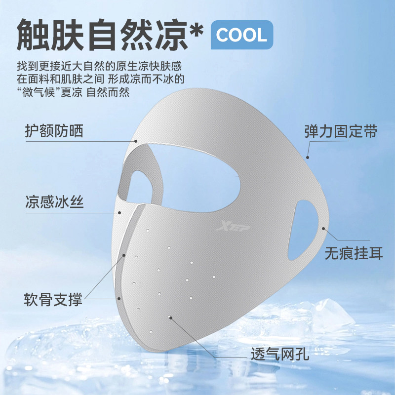 特步10A抗菌冰皮脸基尼,全脸降温防晒!3D立体大空间!不蹭妆容。无痕挂耳!触肤自然凉~