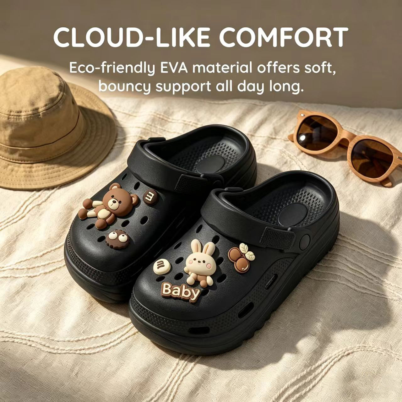 女款洞洞鞋,DIY鞋花设计,软底防滑,适合居家、沙滩、外出等多种场景,舒适透气,夏季必备!