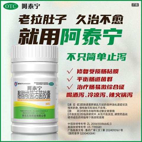 【阿泰宁】酪酸梭菌活菌胶囊0.42g*36粒*1瓶/盒拉肚子