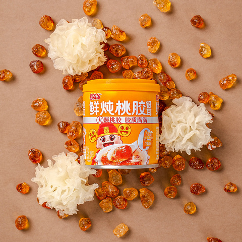 鲜炖桃胶银耳罐头,大颗桃胶,胶质满满!好食材熬出好胶质!配料表干净,要营养,更要健康!