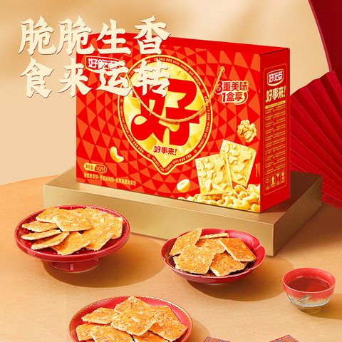好吃点香脆饼干年货零食礼盒(核桃+腰果+夏威夷果)囤货送礼