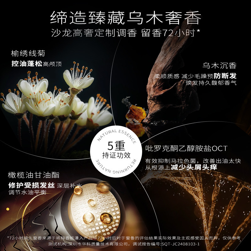 经典珍华乌木香,柔顺质感,减少毛躁预防断发!21年头皮护理专研!油屑头挚爱,多效合一洗护,持久留香72小时!