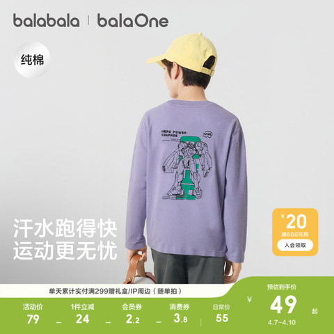 2026春装新款!巴拉巴拉男童长袖/短袖T恤,纯棉材质柔软亲肤,透气舒适,大童打底必备!多件更优惠,快来抢购!