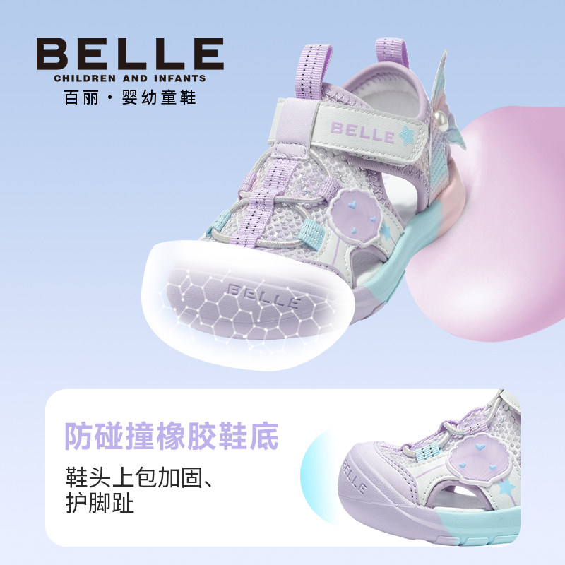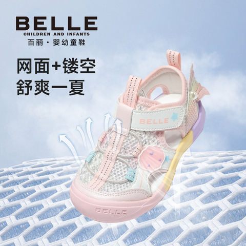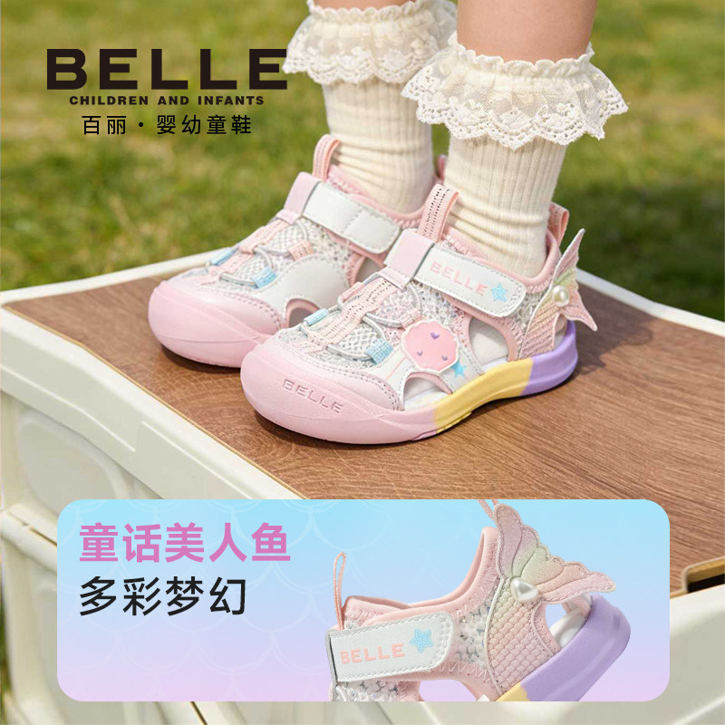 【领70元券,88vip打95折,到手170.05元!】百丽美人鱼包头凉鞋,甜美优雅,为学步期和稳步期宝宝设计,宽楦包头+网面镂空设计,放松小脚,抓地橡胶底,让潮童走稳每一步,舒爽一整夏!