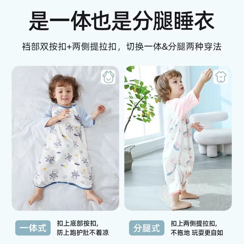 睡袋恒温纱布分腿设计,透气舒适,春夏秋四季适用。宝宝睡觉不踢被,家长更安心!