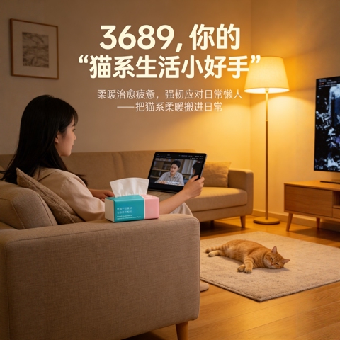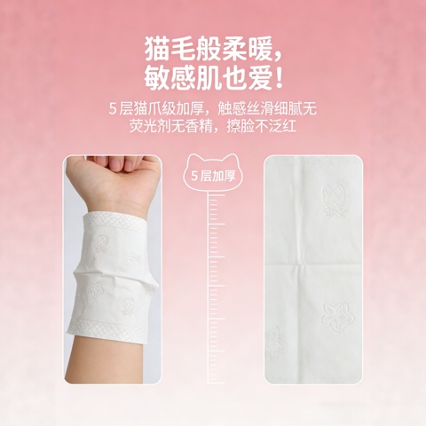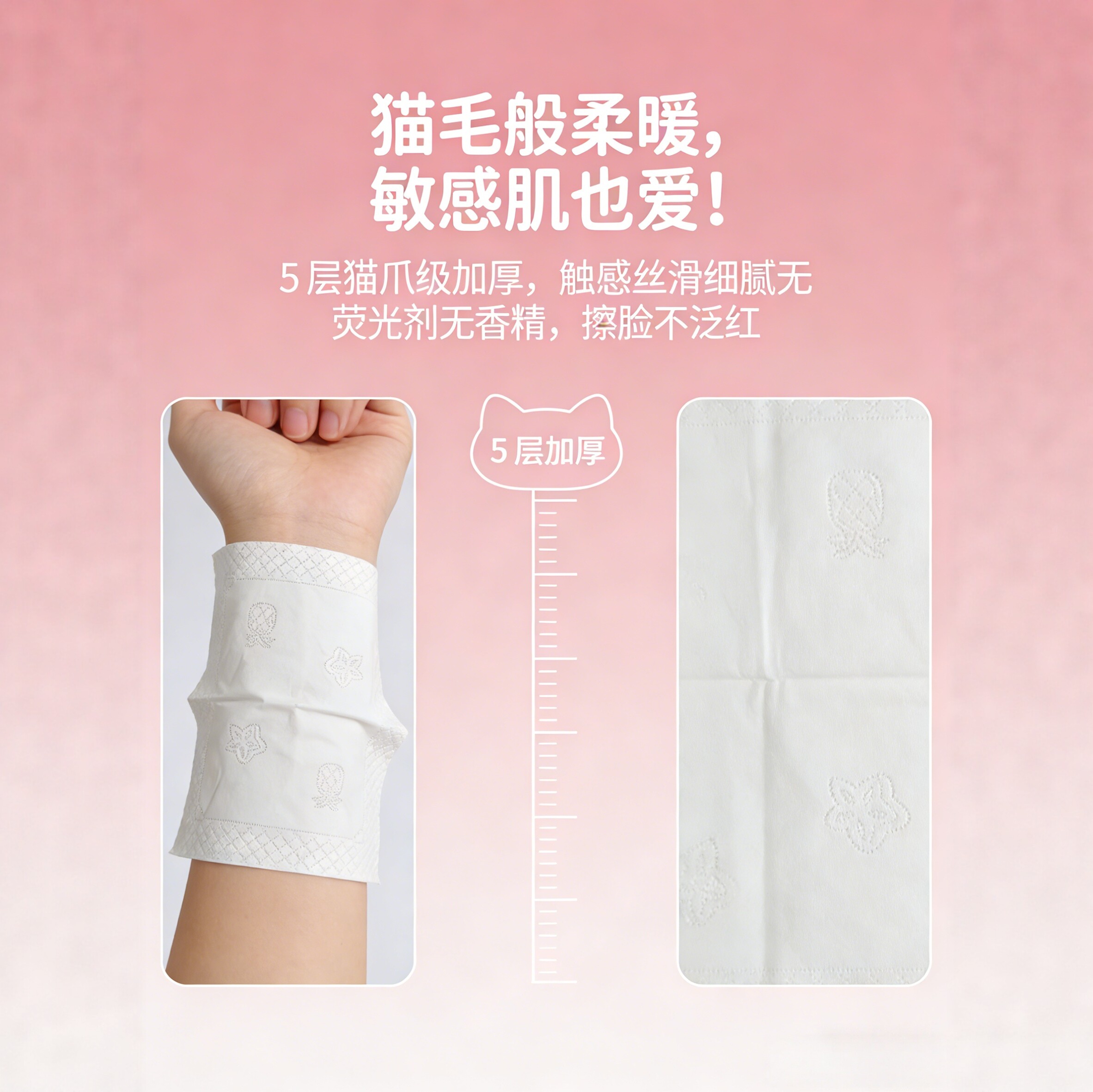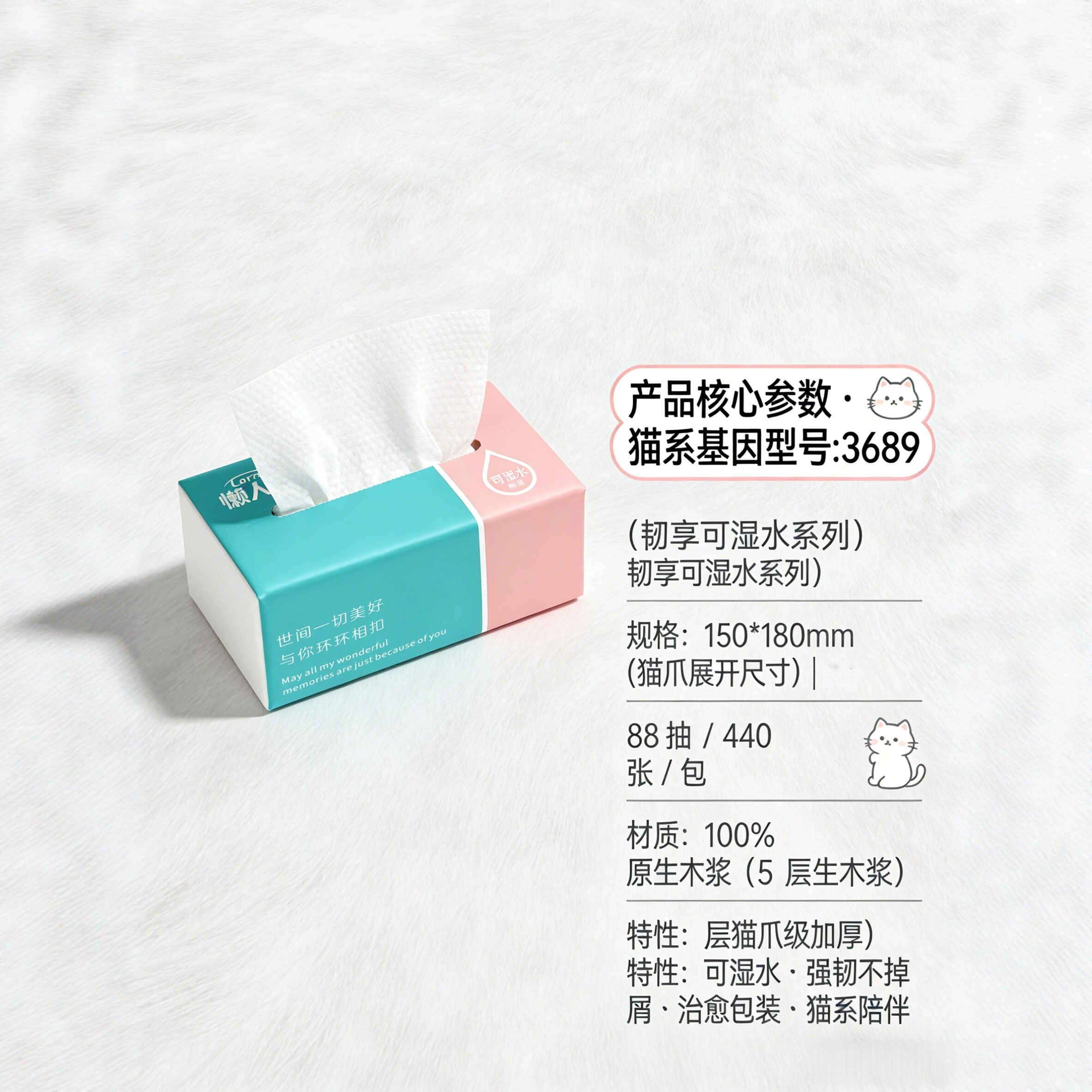 原生木浆懒人猫3689抽纸,5层强韧,可湿水柔暖,干湿两用,整箱装实惠又耐用,淘金币再享折扣,家庭必备好物!