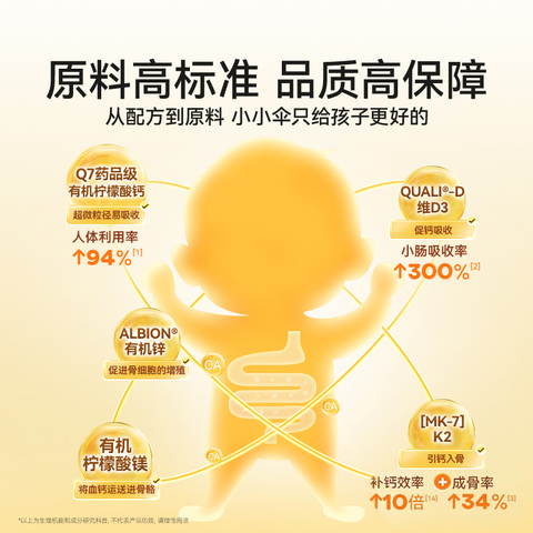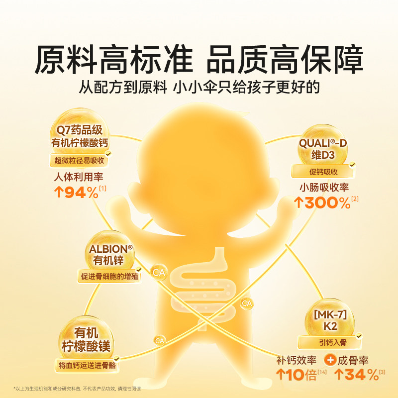 【叠消费卷+淘金币折合122】,【300mg高钙】小小伞有机钙镁锌液体钙儿童钙婴幼儿补钙K2宝宝d3