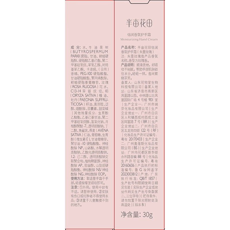 半亩花田倍润保湿滋润护手霜