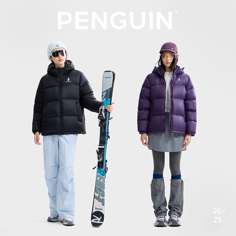 企鹅女装热能羽绒服2026冬季加厚户外保暖面包服情侣拼色羽绒外套