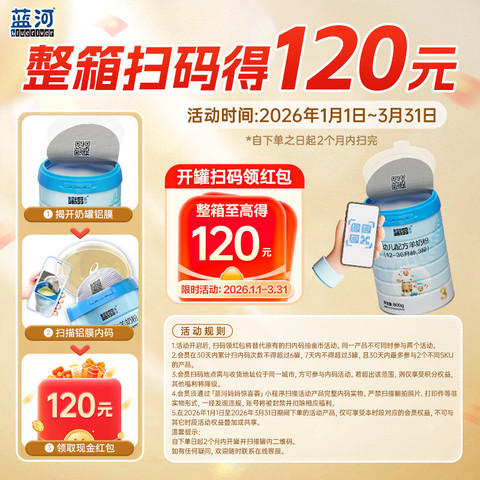 18号0点叠满200-25消费券红包,到手670.85元!蓝河新国标绵羊奶3段奶粉,800g*2罐装,专为1-3岁宝宝设计,营养全面易吸收,呵护成长每一步!现在拍2罐仅需优惠价,品质之选,妈妈更放心!