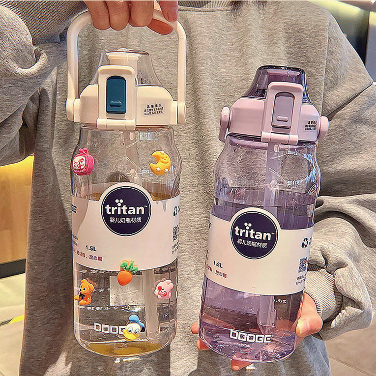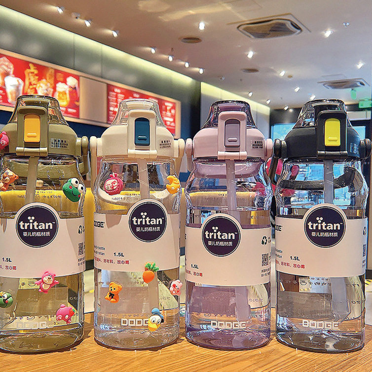 网红大容量塑料吸管杯女生健身运动随手太空杯男生弹tritan情侣杯