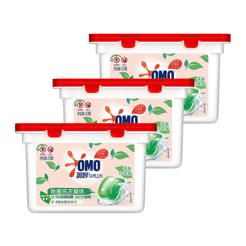 速囤!2毛一颗!够全家用半年!! 天猫超市•奥妙白茶除菌洗衣凝珠50颗*3盒 看图!右上角叠金币36亓,88vip34亓 到手150颗!除菌洁净留香三效合一,懒人必备! 8倍清洁力,还是清新白茶香