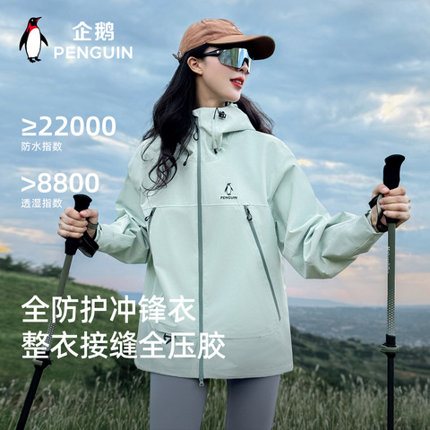 【Baby同款】企鹅风盾2.0冲锋衣,女秋冬户外防水防风登山服外套男,轻便保暖,适合户外运动,防风防水设计,适合全家出行!