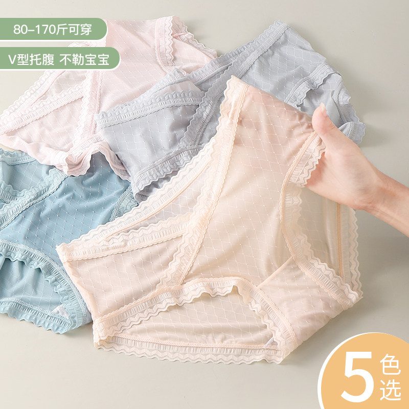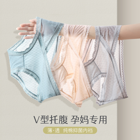 大码纯棉档蕾丝边V型托腹内裤