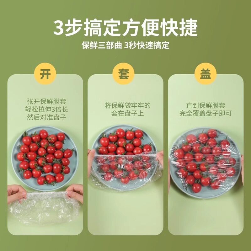 不限量,保鲜膜罩采用先进的保鲜技术,有效隔绝空气,延长食材保鲜期,让你的食物始终新鲜可口,食品级材料制成,无毒无味,安全可靠,完全符合卫生标准,让你的家庭健康无忧~