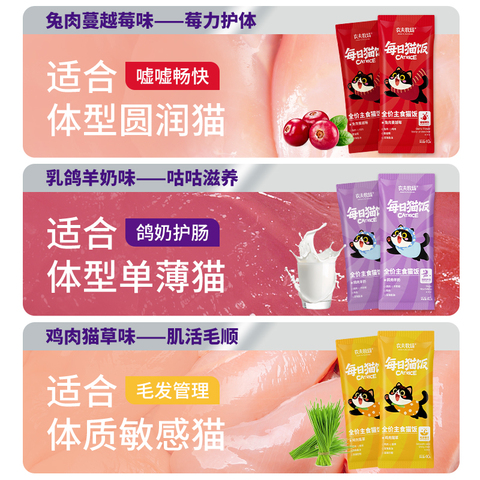 鸡肉+兔肉+鸽肉!!营养丰富!口感极·佳!猫咪爱不释口!!专为猫咪设计的美味湿粮包!!