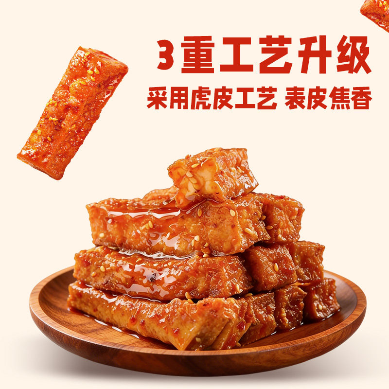咸香可口,独立包装方便携带,外层是那种炸过焦香的虎皮,里面的豆干又嫩又Q!香辣过瘾,越嚼越有味!很适合追剧解馋的小零食!!浓浓豆香的豆干!还是满满蛋白质