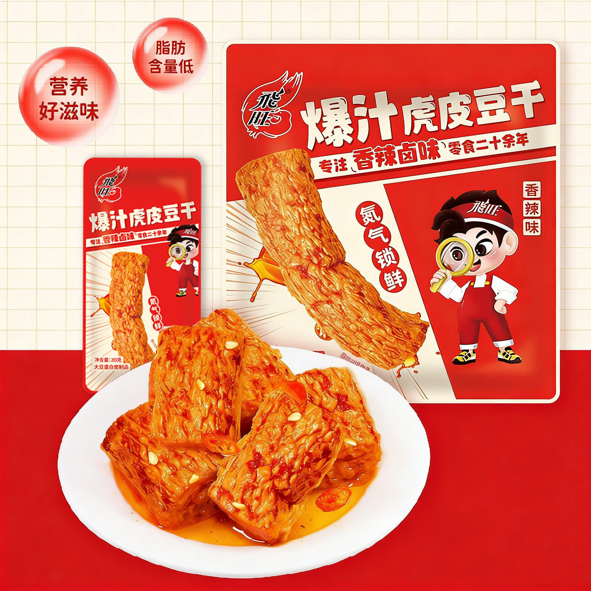 飞旺虎皮爆汁豆干,像在吃吸满卤汁的豆腐糍粑!像再吃灌汤包,汁多到入口即化!解馋必备小零食,飞旺辣条小时候的味道!!