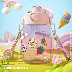 杯具熊大容量水杯女夏季高颜值儿童大肚吸管杯嘟嘟杯学生便携水壶
