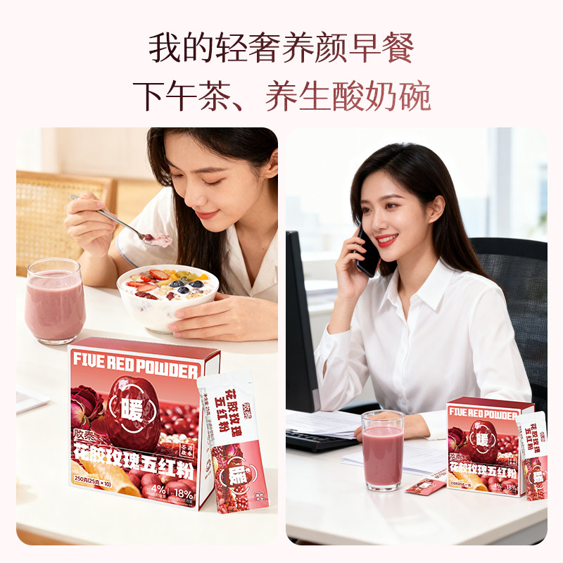 【250g/盒*2盒,到手共20条装仅19.9亓,折0.99/条】香港启泰玫瑰花胶五红粉无糖及时,独立包装方便携带,营养丰富无添加,健康养生好选择!
