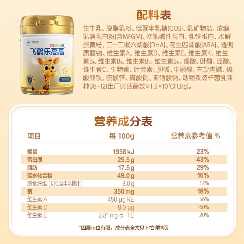 飞鹤乐高高学生营养奶粉儿童赖氨酸CBP高钙益生菌青少年成长