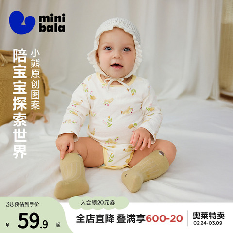 券后到手价49.99,【纯棉】迷你巴拉婴儿衣服新生儿包屁连体衣亲肤透气柔软爬服新款