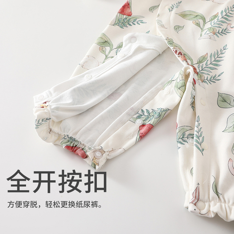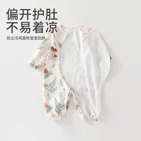 婧麒新生婴儿衣服春秋纯棉连体衣,满月宝宝居家打底春装睡衣爬爬服
