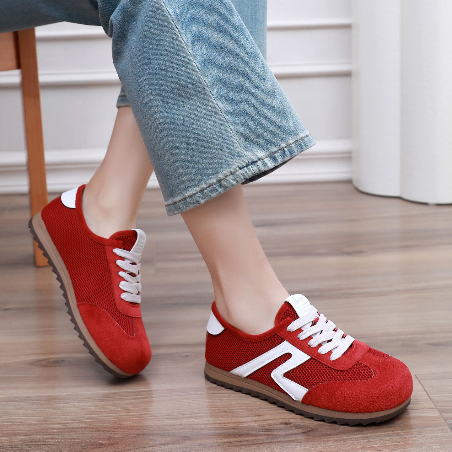春季新款德训鞋女,红色运动休闲板鞋,厚底设计显高潮流,百搭不挑人,爆款推荐!时尚又舒适,轻松打造街头风!