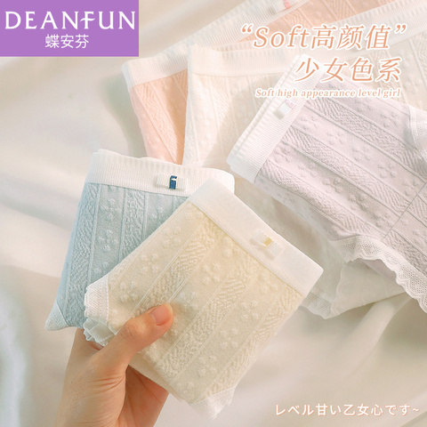 蝶安芬女士内裤中腰纯棉提花抗菌裆全棉舒适透气女生无痕三角裤女。