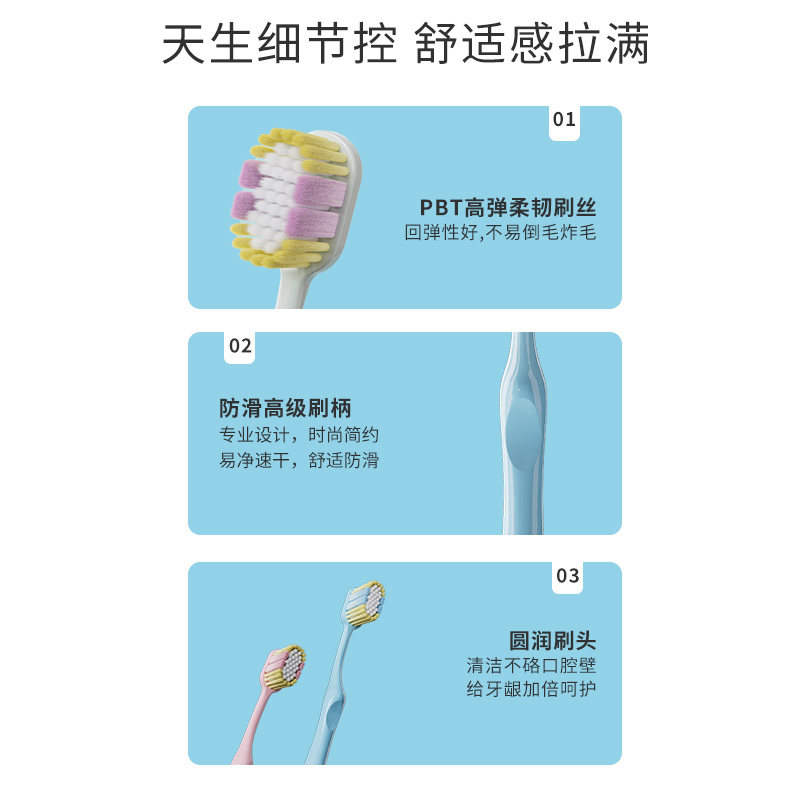 宽头软毛洁齿牙刷4支装,三重植毛设计,清洁更彻底,适合成人学生使用,家庭商超便携必备!