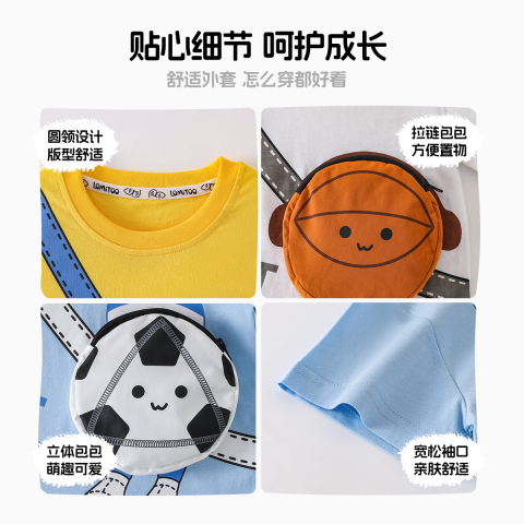 洛米兔纯棉短袖T恤儿童卡通立体包包可爱抗菌宝宝男童女童上衣