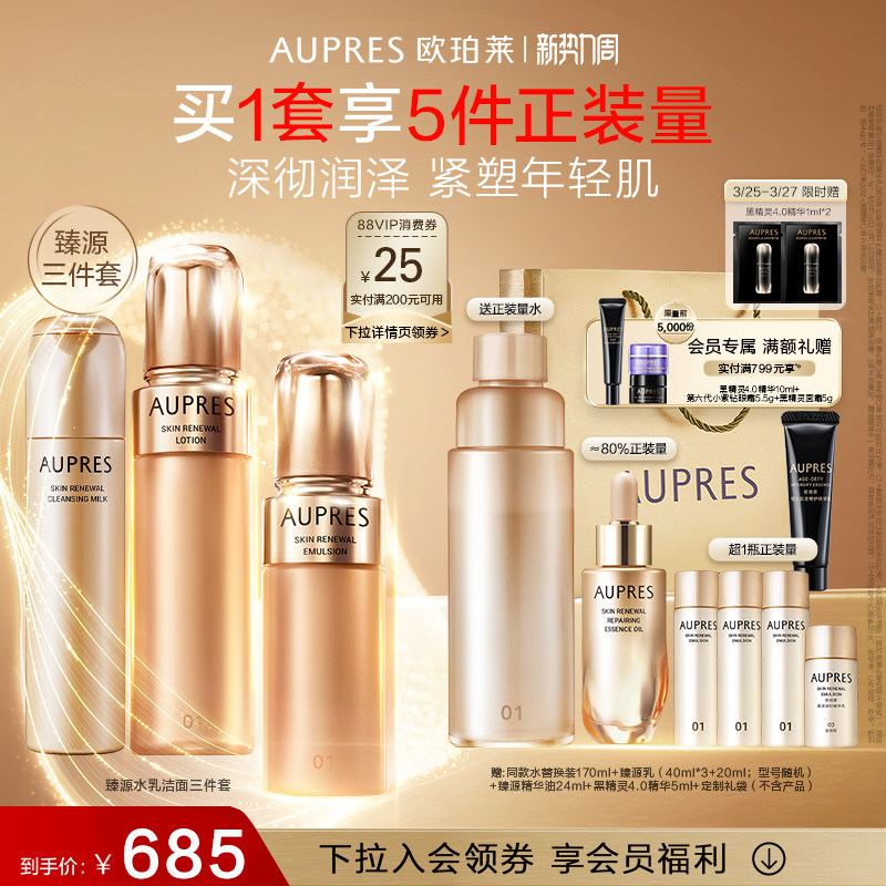 【淘金币抵扣+消费卷1000-200到手427元】欧珀莱臻源凝时精华水乳170ml+乳130ml套装,下单赠:同款水替换装170ml+臻源乳(40ml*3+20ml;型号随机)+黑精灵4.0精华5ml+定制礼盒,抗老抗衰必备,改善细纹提升紧致,水乳清爽不油腻,肌肤水润有弹性,赠同款水+乳+悦颜霜+礼盒,可叠加优惠券,30+熟龄肌必备!