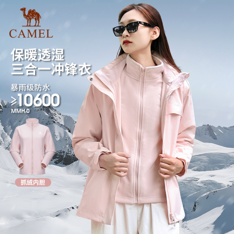 骆驼户外三合一冲锋衣女2026新款秋冬防风防水三防登山服外套男