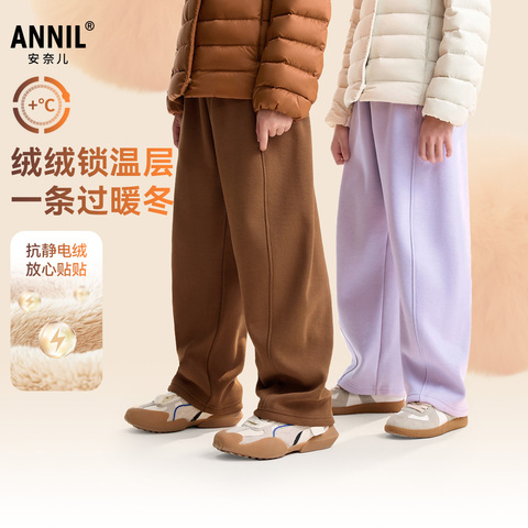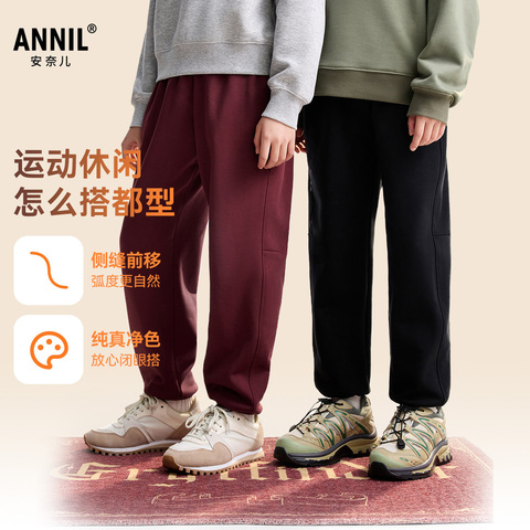 【立减173元】安奈儿男女童休闲裤,保暖束脚设计,宽松阔腿版型,舒适又时尚,适合日常运动或居家穿着。