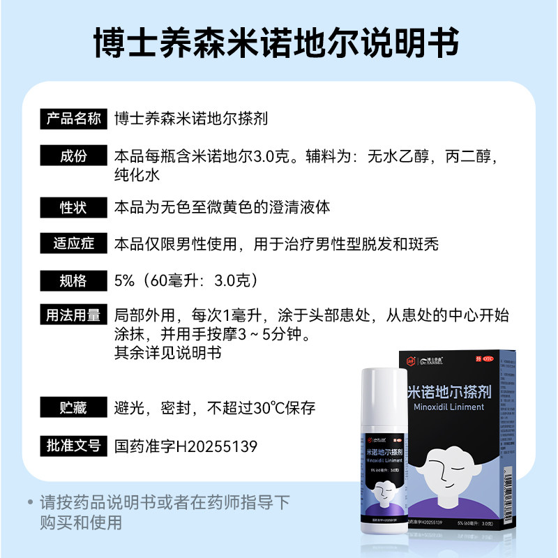 新华博士养森米诺地尔搽剂生发液非酊剂旗舰店男性型斑秃脱发专用