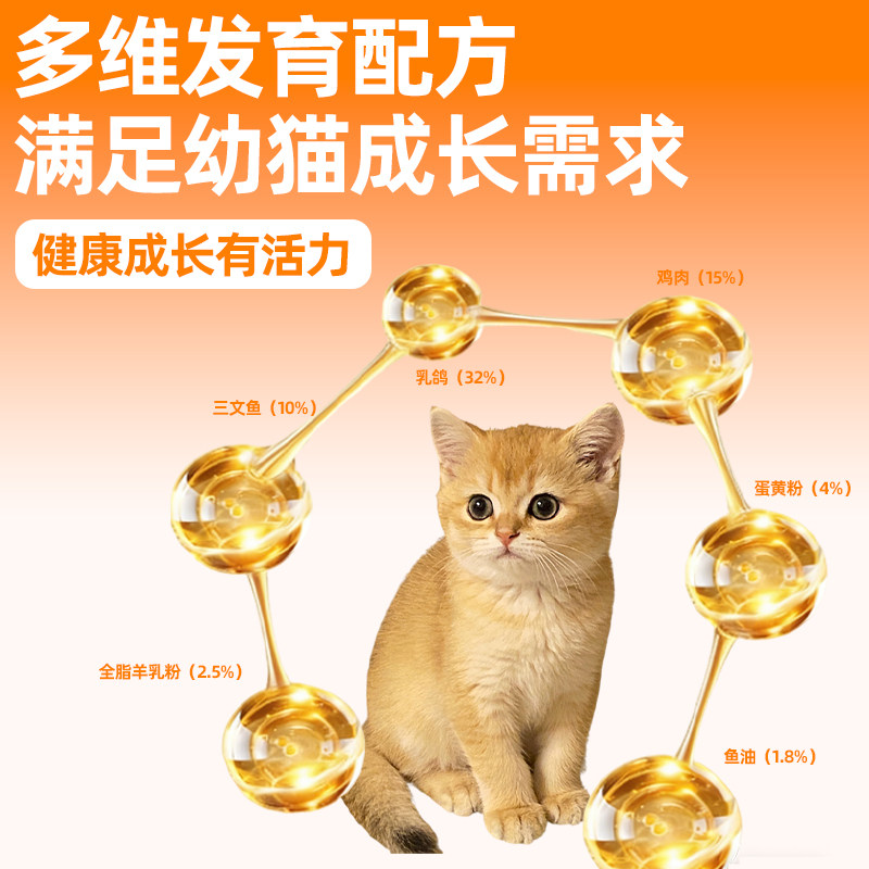 1-12月幼猫专用粮,升级双重益生元,助力免疫。优质肉源,适口性好,呵护猫咪健康肠胃。