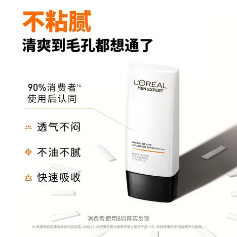欧莱雅男士耀白防晒霜清爽不油腻