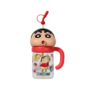 蜡笔小新吸管玻璃杯带盖高硼硅杯