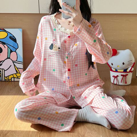 2026爆款睡衣女长袖长裤云朵棉花边圆领开衫甜美家居服套装ak