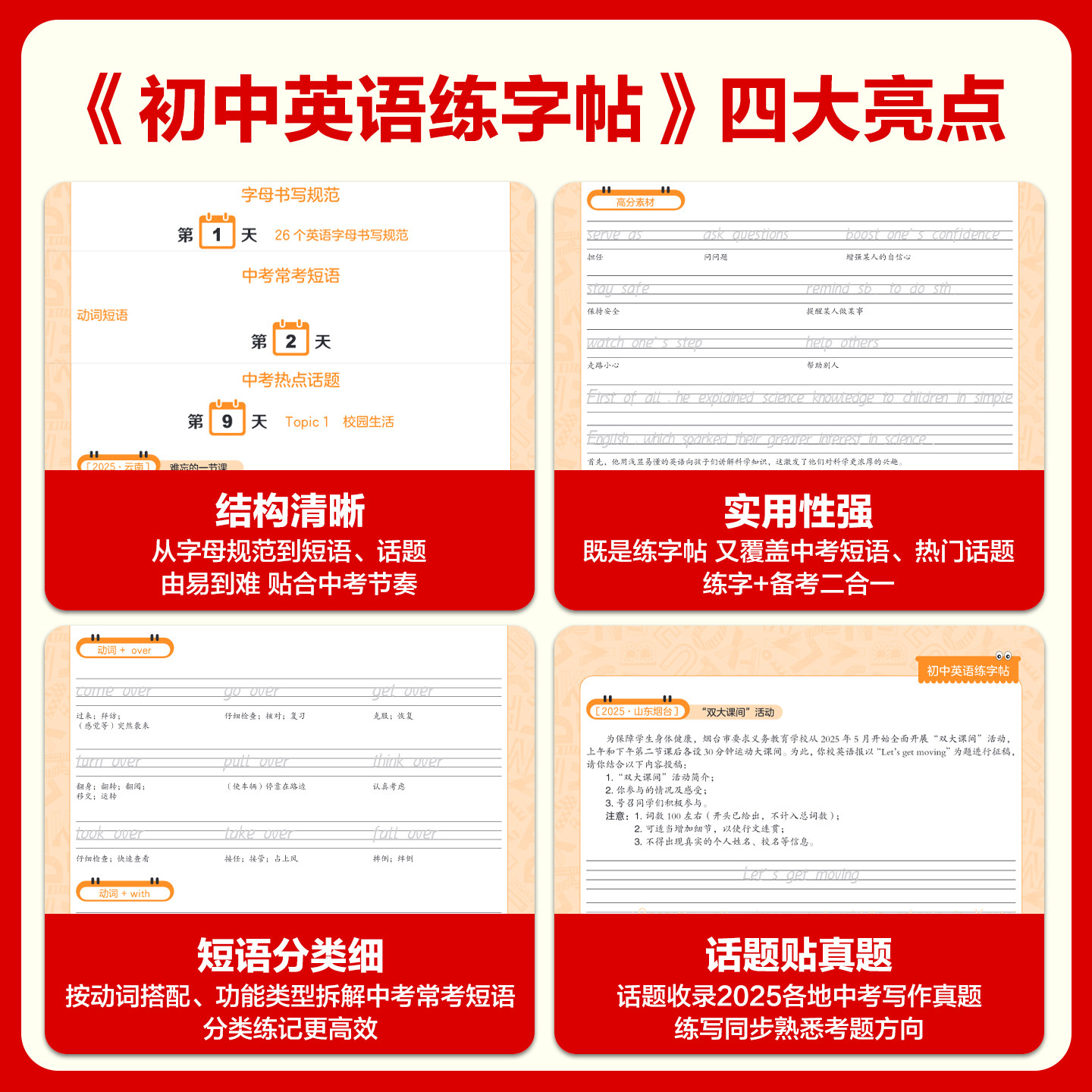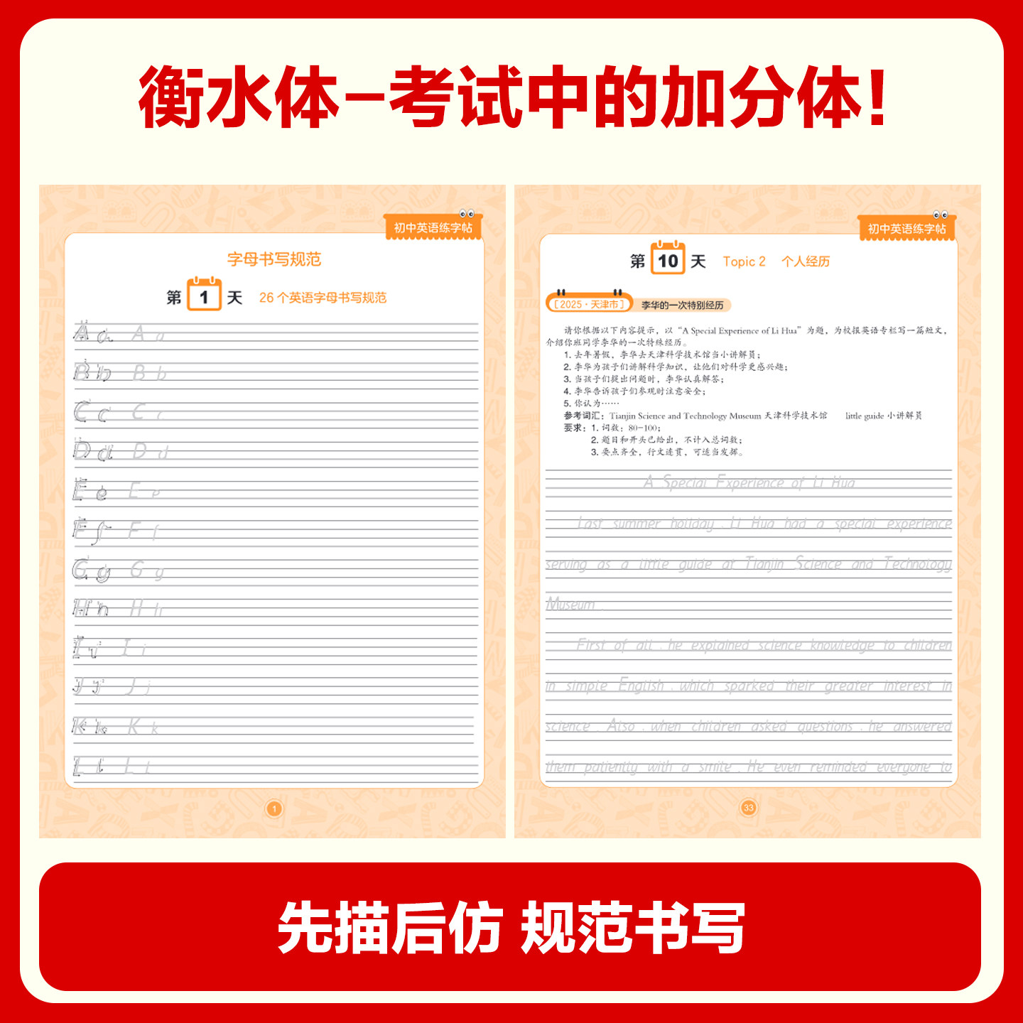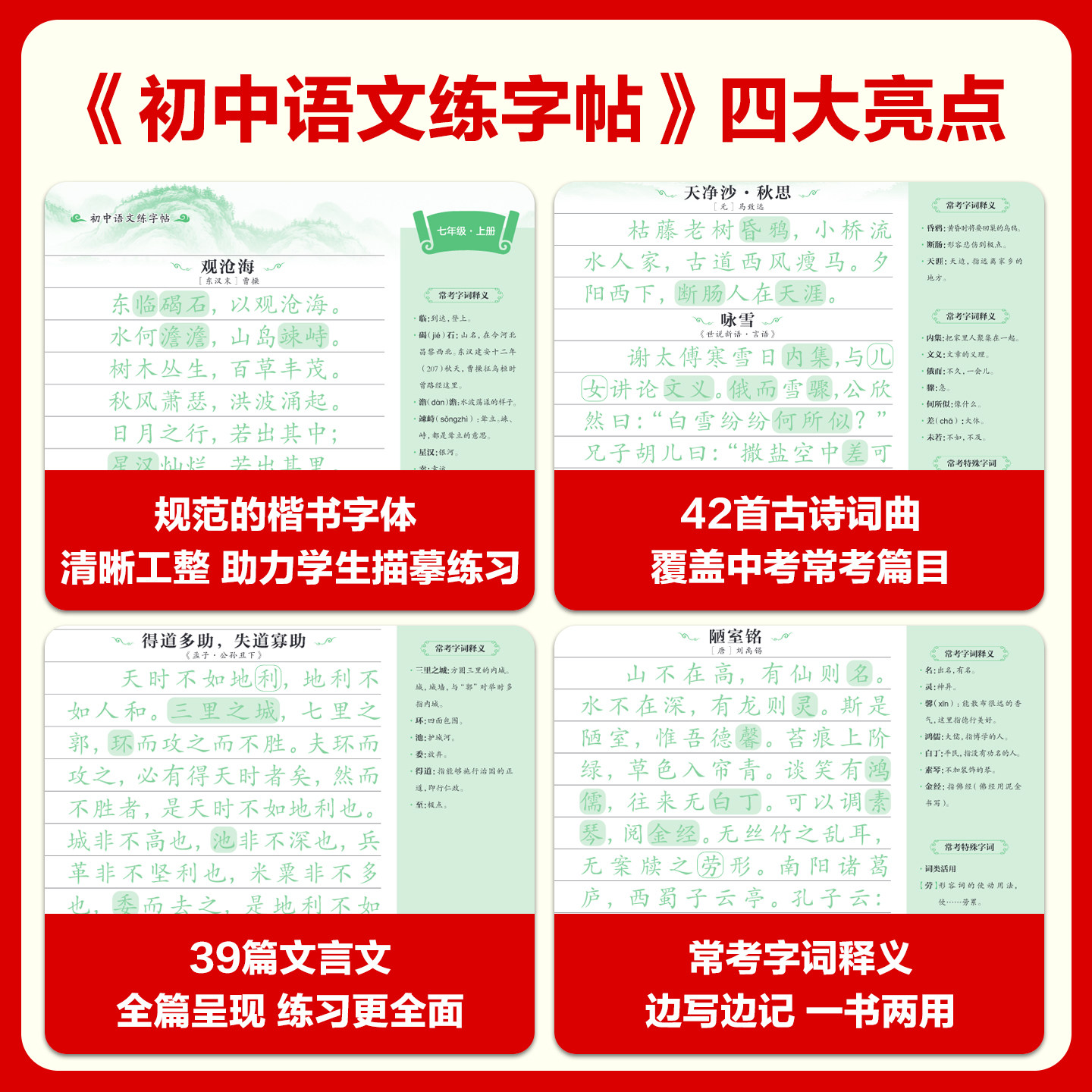 2026新版载望新版初中同步练字帖,语文英语可选,语文楷体,英语衡水体,收录42首课内课外古诗词曲,39篇完整文言文,学生练字的时候就能同时巩固和核心考点,实现书写积累两不误,英语同理,是选择衡水体,每天20分钟,轻松提高卷面分!~~~~
