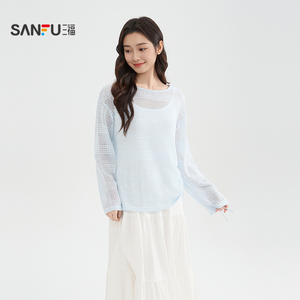 三福长袖T恤女2026新款春季可爱猫咪印花休闲宽松上衣女装517356
